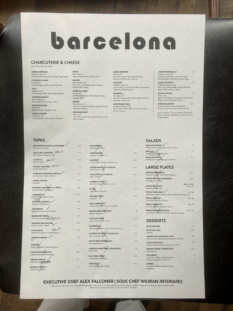 Barcelona Wine Bar offers a thoughtfully curated menu that reflects the vibrant and convivial spirit of Spanish dining. The selection centers on small plates and tapas designed for sharing, inviting guests to enjoy a relaxed and social meal experience. From classic tapas like Jamón & Manchego Croquettes and Gambas Al Ajillo Shrimp to heartier options such as the Small Seafood Paella and Whole Roasted Branzino, the menu balances variety and flavor in every dish.